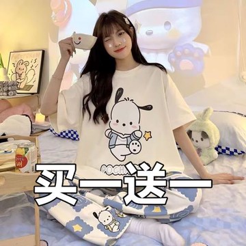 買一送一新款睡衣女夏季短袖純棉套裝甜美夏天可愛學生卡通家居服