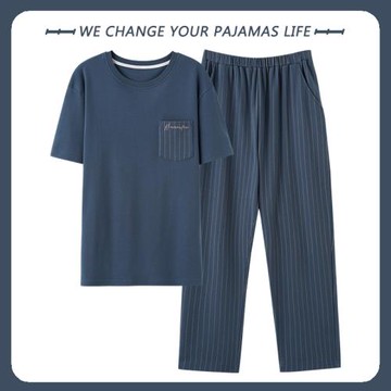 2025年睡衣男士夏季純棉短袖長褲寬松休閑家居服薄款大碼兩件套裝