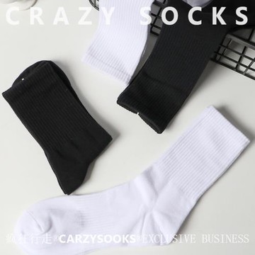 男女黑白運動襪新疆棉吸汗休閑百搭純色中筒襪秋冬長襪學生襪子男