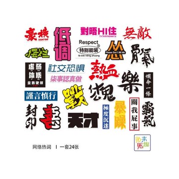 50張搞笑粵語文字英文學習個性貼畫防水電動車頭盔涂鴉行李箱貼紙