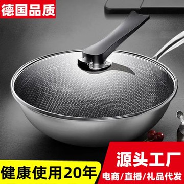 抗菌蜂窩雙面不沾304不銹鋼炒鍋不粘鍋無涂層炒菜鍋煎鍋平底鍋具