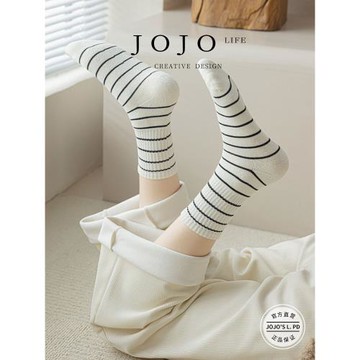 JOJO'S L. PD.Drumm.保暖白色學生襪網紅款百搭字母條紋襪 | 擊鼓