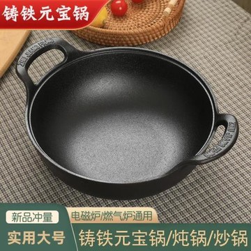 鑄鐵元寶鍋炒菜鍋雙耳燉鍋炒鍋不粘鍋電磁爐燃氣通用無涂層平底鍋