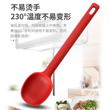 食品級硅膠淺口湯勺耐高溫長柄粥勺沙拉勺不粘鍋炒菜漏勺盛湯勺子