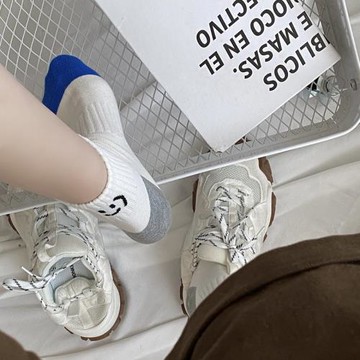 ins新款春夏拼色笑臉襪子女 運動風男士夏天短筒潮流精梳棉襪情侶