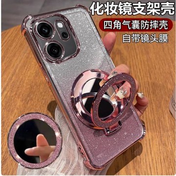 適用OPPO Reno13FS5G手機殼鏡子支架 Reno12F氣囊軟邊 Reno14F時尚保護男女 Reno11F鏡頭膜硅膠軟防摔全包邊