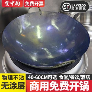 點我下載老式鐵鍋商用雙耳酒店廚師專用柴火灶手工鍛打無涂層燃氣灶大炒鍋