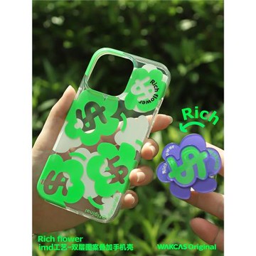 花花蘋果17殼iphone16promax手機殼原創小眾設計ins旋轉支架適用蘋果15pro磁吸保護殼支架蘋果14pro趣味13