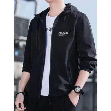 春秋季新款男士連帽外套戶外沖鋒衣青年時尚休閑可脫卸帽百搭夾克