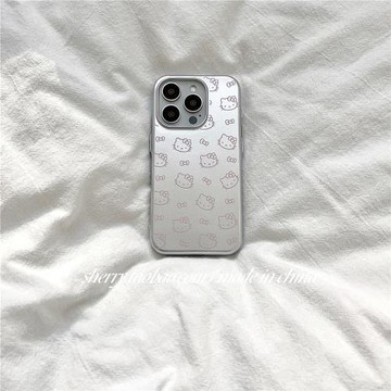 SHERRY*ins風甜酷可愛銀色滿屏粉線條貓適用于蘋果16ProMax手機殼iPhone15Pro小眾少女心14簡約13清新卡通