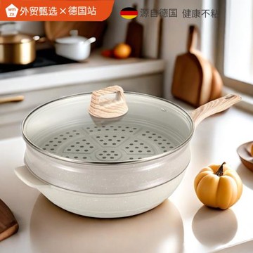 網紅鈦金不粘鍋微壓炒鍋少油煙蒸煮一體多功能炒菜鍋家用大容量鍋