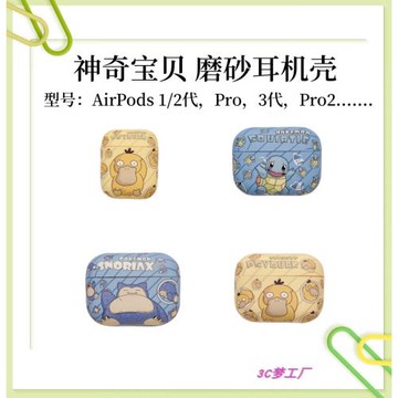 日系卡通可達鴨杰尼龜卡比獸適用AirPods pro2代無線藍牙耳機4代保護套AirPods1/2代蘋果AirPods3磨砂軟殼