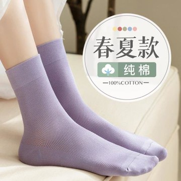 歐蒂愛女士網眼襪子女夏季薄款透氣防臭吸汗抗菌中筒夏天超薄棉襪