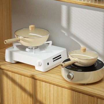 漂亮的小炒鍋不粘鍋家用麥飯石超輕炒菜鍋兩人用電磁爐燃氣灶專用