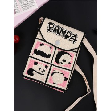 國風潮流伴手禮出門便攜針織單肩包時尚百搭手拎包可愛熊貓手機包
