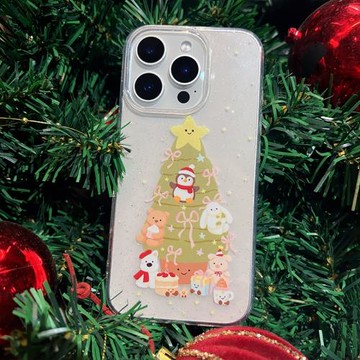 ins風可愛閃粉呆萌小動物圣誕樹適用于蘋果13/14/15/16proMax趣味少女手機軟殼iPhone11/12MINI透明16plus