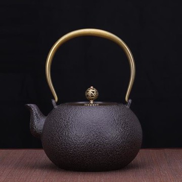 日式圍爐煮茶器鐵壺鑄鐵圓素無涂層日本生鐵壺燒水壺泡茶鑄鐵茶壺