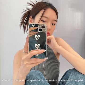 由里公園ins小眾甜酷少女鏡面立體愛心適用16蘋果16ProMax防摔手機殼iPhone15華為mate60pro/16Pro軟14Promax
