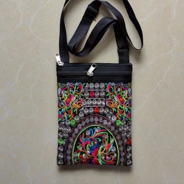 2025百搭新款繡花斜挎包少數民族風大號刺繡手機包女款錢包老年人