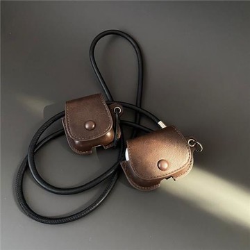 小眾復古咖色皮質耳機套斜跨適用Airpodspro3代保護套蘋果無線耳機套Airpods1/2代新款男女款AirPods4保護套