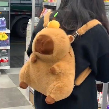創意學生卡皮巴拉毛絨背包水豚包包休閑百搭毛毛包女大容量雙肩包