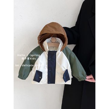 男童外套2026春秋季新款帥氣女寶拼色連帽休閑沖鋒衣嬰兒時尚童裝
