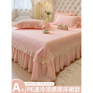 粉色奶油公主風冰絲乳膠涼席三件套床裙款家用空調軟席可水洗夏天