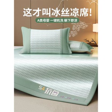 點我下載高端冰絲涼席三件套床笠款夏季2025新款藤席可機洗水洗軟席草席子