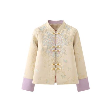 艾格新中式刺繡夾棉外套女2025秋冬新款小個子絕美國風棉服上衣
