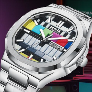 馬克華菲手表男款TV復古電視機個性手表防水夜光方形時尚機械腕表