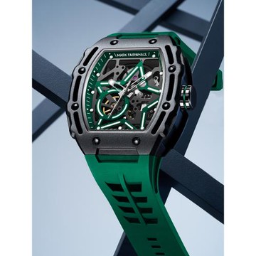 Mark Fairwhale 馬克菲爾 酒桶型碳纖維合金雙面鏤空多齒輪夜光機械錶-6660