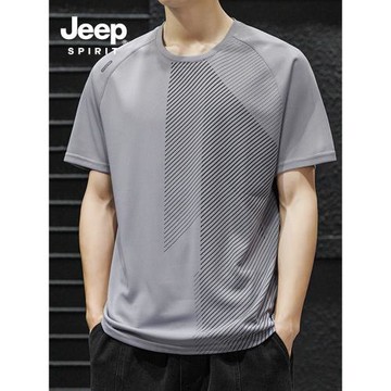 JEEP短袖t恤男士夏季冰絲薄款寬松休閑透氣體恤男裝運動速干衣服