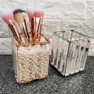 玻璃化妝品收納盒口紅刷桶收納架非亞克力梳妝臺桌面整理水晶刷筒