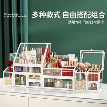 化妝品收納盒 桌面收納盒 護膚品防塵有蓋置物盒 學生宿舍收納 大容量儲物盒