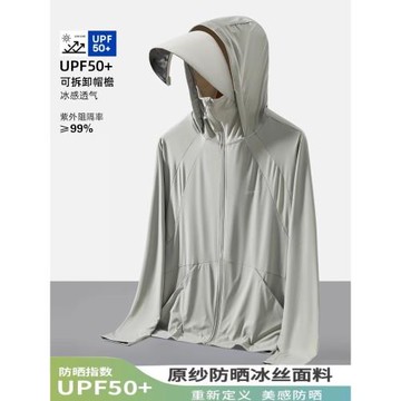 真維斯戶外防曬衣男夏季薄款冰絲涼感透氣UPF50+大帽檐通勤外套L