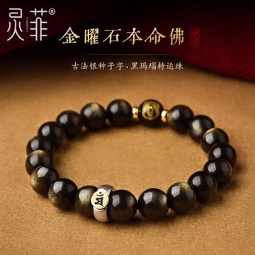 金曜石十二生肖本命佛手鏈黑曜石屬蛇普賢文殊虛空藏菩薩手串男女