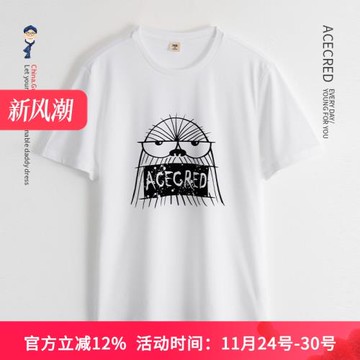 男款黑色概念性印花短袖T恤|8E9FJK3