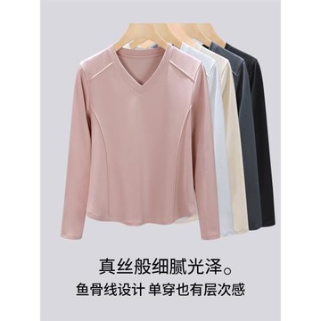 (免運)高品質新疆棉長袖t恤女正肩T衫絲光棉外穿體恤白色V領春秋打底衫