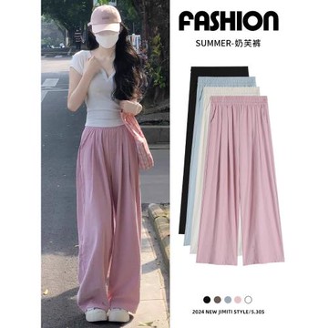 褶皺褲女夏季薄款雅痞闊腿休閑冰絲涼涼抖抖防曬遛彎褲子小個子