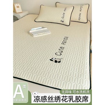 夏季刺繡冰絲乳膠涼席三件套2025新款床笠夏天涼墊軟席子可機水洗