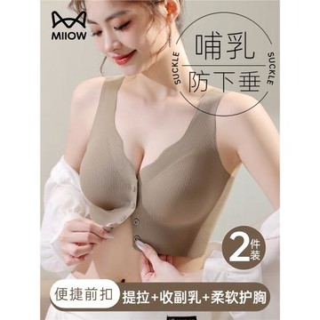 貓人前扣媽媽內衣女無鋼圈聚攏本命年軟支撐無痕哺乳背心式文胸罩