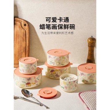 舍里卡通保鮮碗密封帶蓋便攜陶瓷飯盒上班族微波爐加熱便當盒餐盒