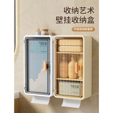 化妝棉自動按壓式收納盒壁掛卸妝棉盒子掛墻式卸妝巾棉片收納精致