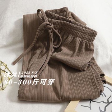 大碼女裝300斤夏季冰絲闊腿褲女薄款寬松垂感遮肉顯瘦休閑褲簡約