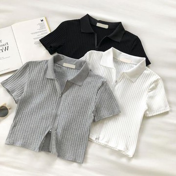 ins超火短款翻領polo衫女夏天短袖開衫雙拉鏈T恤洋氣減齡上衣百搭