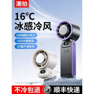 2025款數顯199檔高速手持冰敷制冷小風扇迷你大風掛脖折疊桌面USB