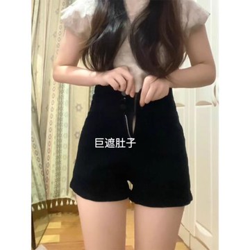 大碼黑色牛仔短褲女秋季2025新款胖MM高腰顯瘦辣妹緊身包臀熱褲子