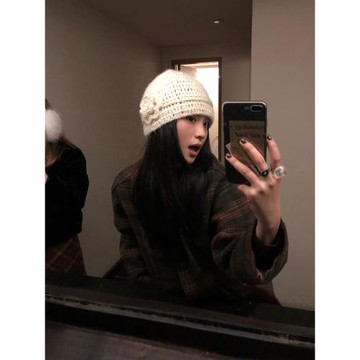 細閃花朵針織包頭帽子女秋冬百搭保暖冷帽氛圍感顯臉小毛線套頭帽