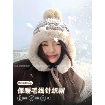 費爾島帽子女秋冬季針織毛線帽保暖護耳毛絨雪地帽東北防寒雷鋒帽