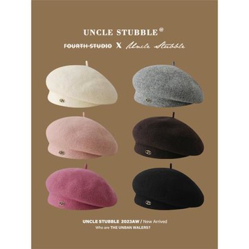 xmq新款毛呢貝雷帽石原里美同款帽子女秋冬圓標復古顯臉小畫家帽